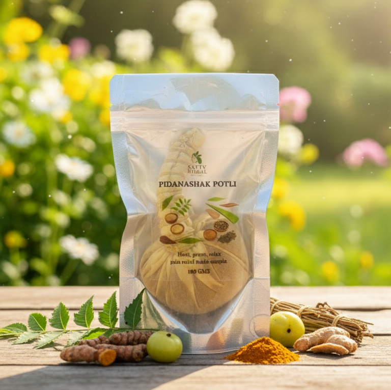Experience simple and effective natural pain relief with this Ayurvedic Pidanashak Potli. Designed to ease everyday aches and stiffness, it works through therapeutic heat and herbal ingredients to naturally relax muscles and joints.